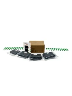 - Non-woven polypropylene (weed fabric), polyvinyl alcohol dissolvable film (seed pouches), dehydrated coco coir, plastic PLA garden stakes, organic & non-GMO seeds